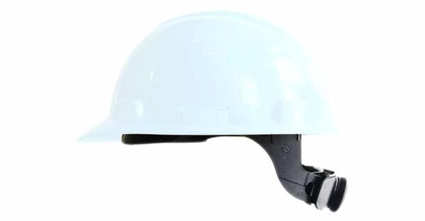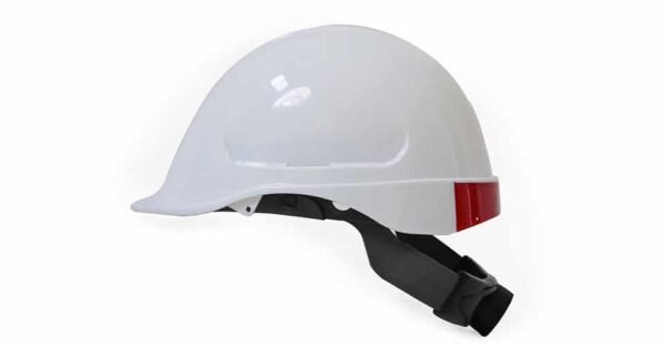 Casco de seguridad termoplástico, polietileno de alta densidad, diseñado para reducir el peligro de explosión a conductores de alto voltaje y contra impactos de objetos caída libre, golpes de objetos fijos, choques eléctricos, salpicaduras químicas, fuego, radiación lumínica, solar, entre otros. Tafilete de 6 puntos de apoyo con cintas de nylon para mayor comodidad, 4 puntos de apoyo barbuquejo, tipo rachet, almohadilla-banda de sudor recubierta en cuero sintético, canal superior para evacuación de agua, visera corta perfil redondo para mayor comodidad en trabajos en lugares estrechos, sin ventilación.